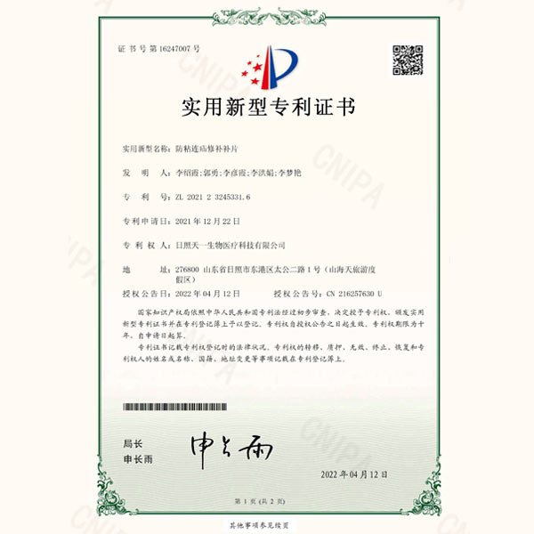 2011年,天一生物與山東省藥學科學院建立產(chǎn)學研合作,聯(lián)合研發(fā)疝修補類器械。該產(chǎn)品研發(fā)后曾在首都醫(yī)科大學附屬北京朝陽醫(yī)院、首都醫(yī)科大學附屬北京同仁醫(yī)院進行臨床試驗,試驗結果表明,本公司產(chǎn)品組合形狀更符合臨床使用要求,方便臨床醫(yī)生術中操作,目前共擁有四大系列產(chǎn)品,臨床使用效果得到了行業(yè)眾多專家的一致好評。